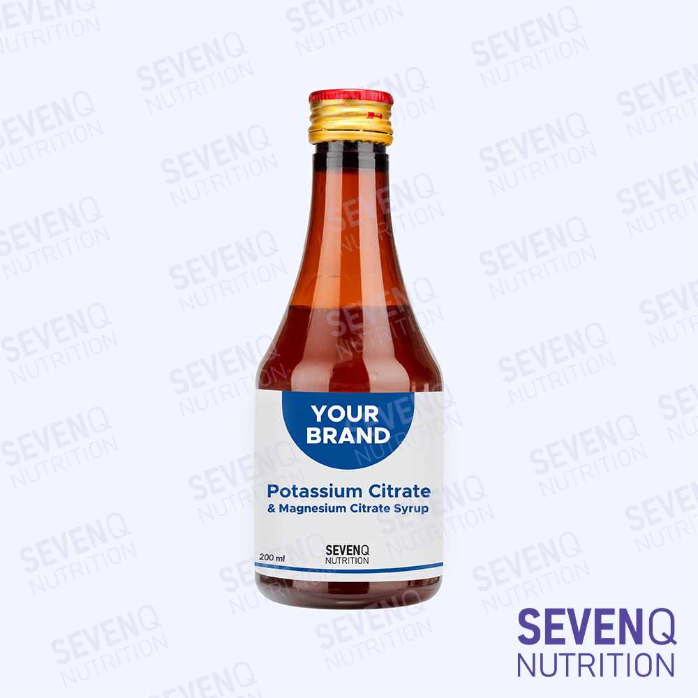 We are contract manufacturer & private label supplier of potassium citrate syrup. Our potassium citrate syrup is enriched with potassium citrate & magnesium citrate that helpful for kidney health. Formulated for easy consumption and efficient nutrient absorption, this syrup ensures better efficacy and user convenience. We offer contract manufacturing and private labelling for potassium citrate syrup with customizable formulation, flavor profiles and packaging options.